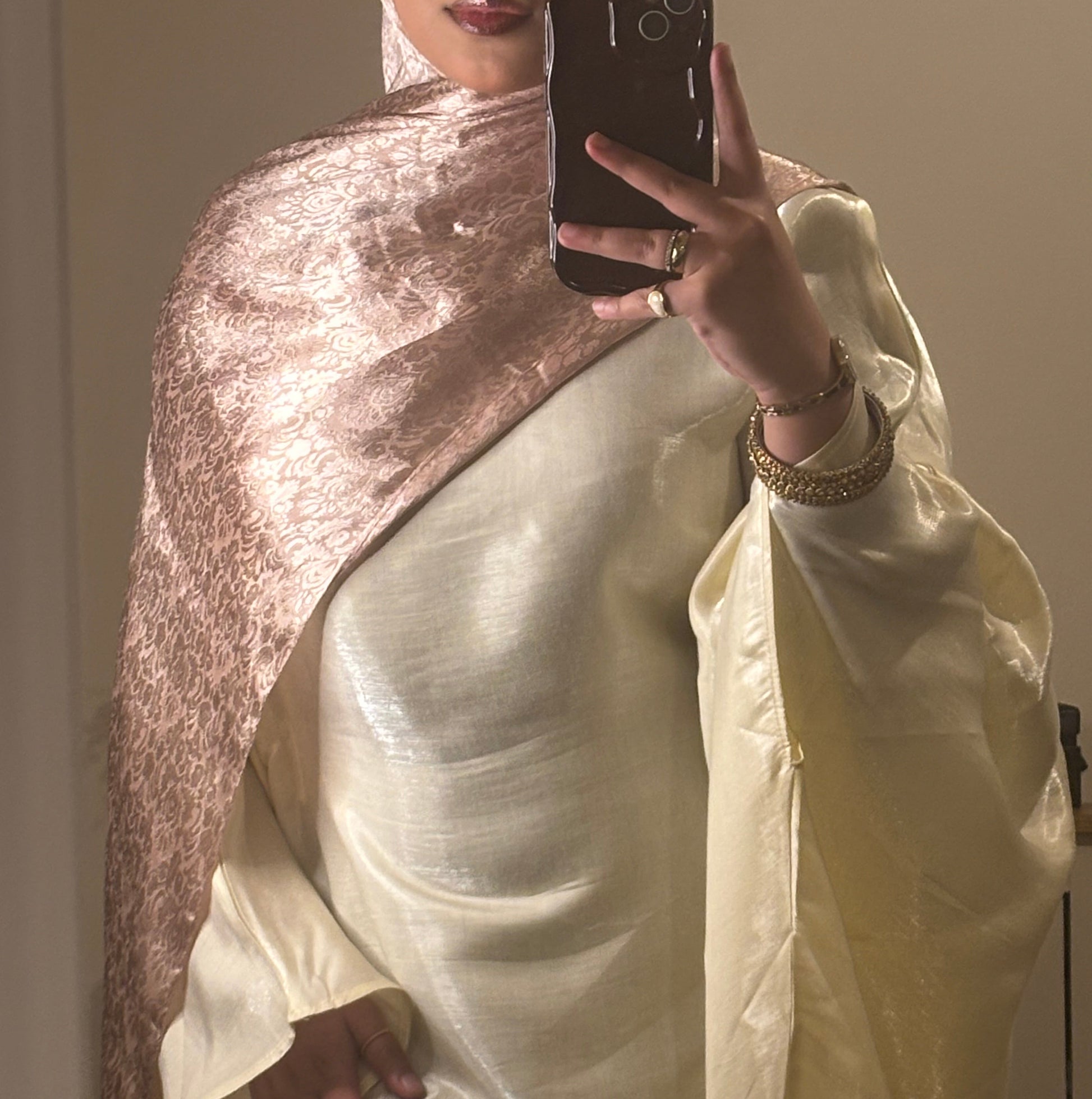 Effortlessly elegant with modern refinement, the R I A Abaya redefines simplicity with a statement silhouette. Crafted in a buttery-soft, double-lined organza, this abaya offers a delicate sheen and luxurious feel against the skin. Its butterfly-inspired cut creates a graceful drape that flows with every movement, while the stitched-in inner belt allows you to cinch the waist to your personal preference — from relaxed and open to subtly tailored.